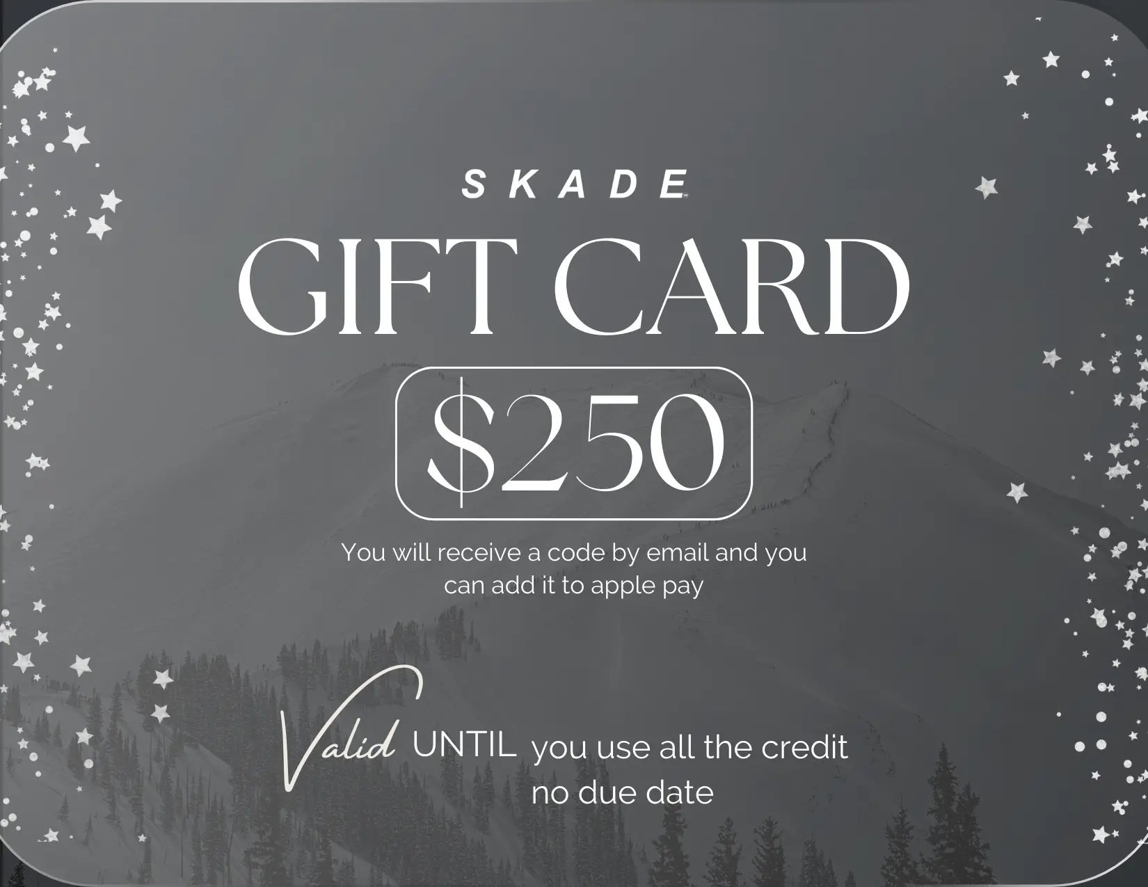 Why choose the Skade Gift Card? Firstly, it offers ultimate flexibility. The recipient can use it to purchase any item from our wide range of clothing and accessories. No more guessing what they want - they can choose exactly what they love! Even add it to your Apple Pay wallet!